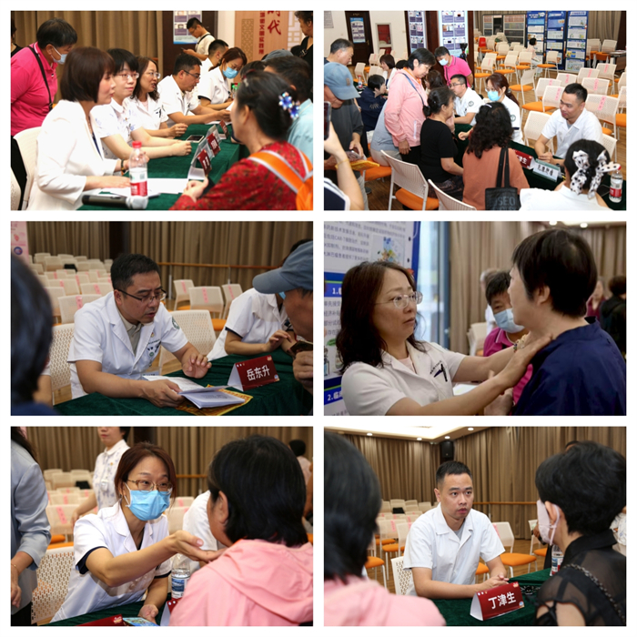 义诊咨询环节汇聚了乳腺肿瘤、淋巴瘤、肺部肿瘤等多学科医疗及护理专家,为居民提供专业疾病咨询和免费筛查,受到广泛好评。肺部肿瘤科副主任、主任医师、天津市癌症康复会副主任委员岳东升,淋巴瘤内科副主任医师钱正子、主治医师孟祥睿,乳房再造科主治医师丁津生,淋巴瘤内科护士长贺瑾,肺部肿瘤科护士长刘丽峰,为居民提供专业疾病咨询和免费筛查,受到了社区居民的广泛好评。