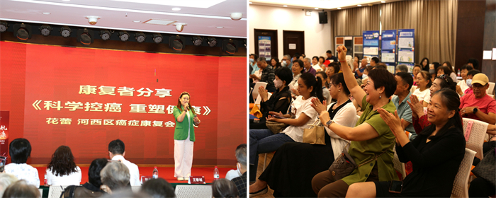 河西区癌症康复会会长花蕾作为癌症康复者代表,分享了自身抗癌经历和科学康复心得,以勇气与爱鼓舞了现场听众。