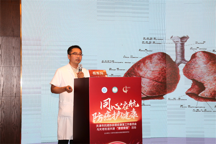 天津医科大学肿瘤医院肺部肿瘤科副主任岳东升以《肺癌:预防比治疗更重要》为题,介绍了日常生活中肺癌预防的方法和早期临床症状,强调早期预防的重要意义,突出“防大于治”的理念。