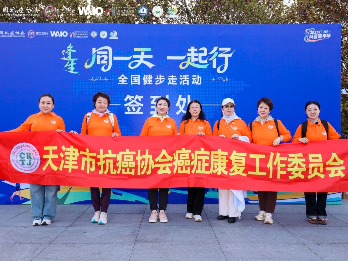 2025年11月6日,中国抗癌协会主办的“同一天·一起行”全国健步走活动在昆明滇池海埂大坝举行。天津市抗癌协会癌症康复工作委员会团队积极参与,精神抖擞,与来自全国的肿瘤专家、康复患者、医护人员及志愿者,共同迈出健康坚定的步伐,以实际行动诠释了科学运动、积极康复的理念,展现了天津癌症康复工作者与志愿者们昂扬向上、团结协作的精神风貌。
